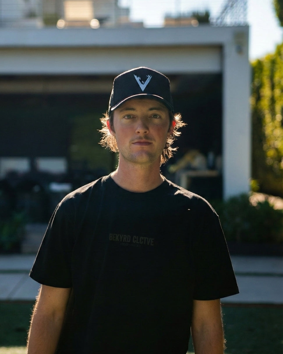 Simple, bold, and built for everyday wear. The White V-Trucka Hat is a black trucker with breathable mesh backing, fronted by a commanding white V-logo. A true Backyard Volleyball staple.